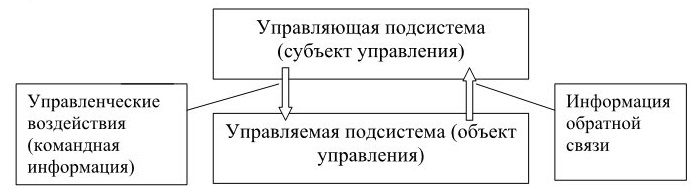 Любая система рассматривается как единство управляющей подсистемы (субъекта управления) и управляемой – объекта управления, основанная на принципе обратной связи, характеризующем информационную и пространственно-временную зависимость (рисунок 1.2).