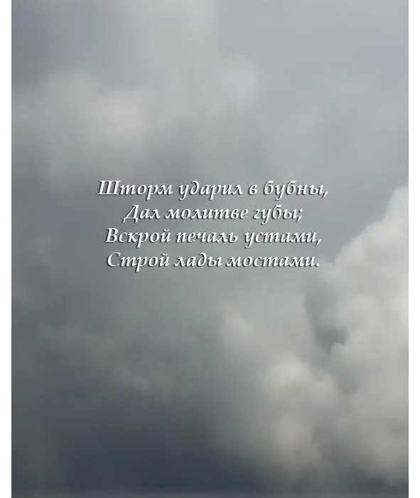 Я тянулся к тебе неотступно и тяжко,Вняв реке без ладьи;Ты ютила меня красотой нараспашкуС диким солнцем в груди.Напоила дыханьем… И взвил вещий ветерГрозовые лады!И в душе заиграли, как вольные дети,Родовые сады.И запела душа, отогретая силой,Чья свобода – в корнях;А нетленная речь свет надежд оживила,Дав идеям размах…Что ещё мы не сделали этой эпохе,Потерявшей мечты,Закатавшей кручину в протяжные охиИ отраду в посты?Бьют перстами по клавишам вольные нервы;Славься, мир без тоски!Я врастаю в любовь без причин и без меры,Только так мы близки.Вечер