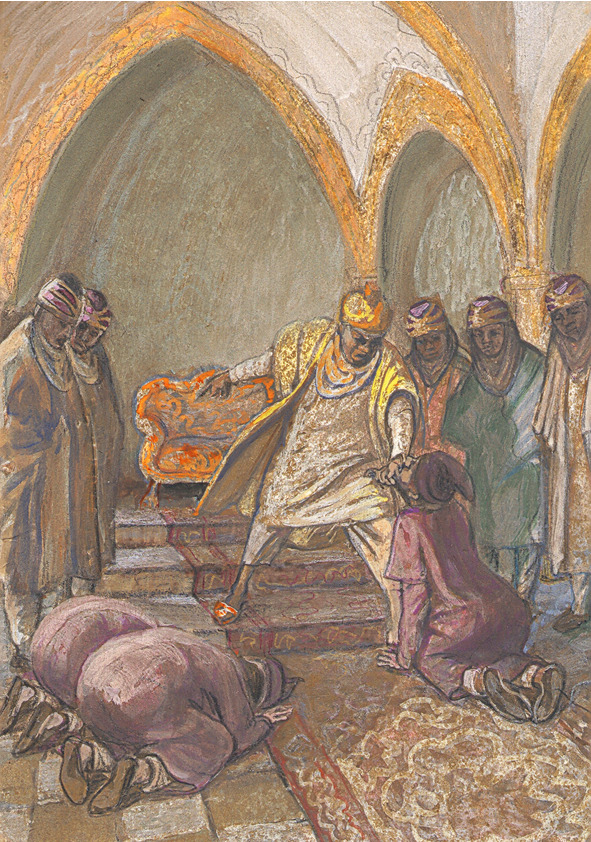 Визирь возненавидел малыша задолго до его рождения: еще, когда мать носила его в чреве. Рождение же Мусы наполнило злобное сердце визиря такой лютой ненавистью, что он трепетал от ярости не только, когда видел мальчика, но даже, когда слышал его имя. Эта ненависть свела его с ума. В мечтах о троне он решил, во что бы то ни стало извести законного наследника. Забыв о чести, он ступил на путь измены.