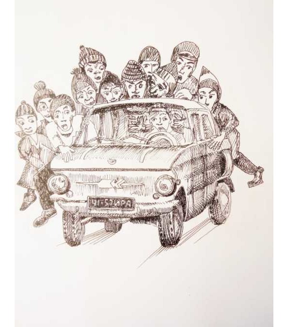 Suddenly, when they were in the middle of the hill, they heard the sirens and saw police cars. Everyone fled leaving the poor driver in trouble. The door in the car got stuck, he couldn’t open it and the brakes didn’t work.