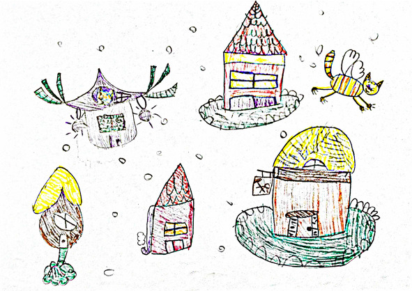 Каждый вечер кошка выходила во двор и долго-долго летала. А каждую ночь она закрывала свои крылья и ложилась спать.