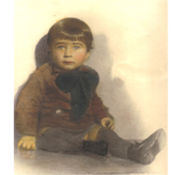 Это я, маленький, скорее всего, трёхлетний. Меня зовут Миша Качан. Я довольно плотный карапуз. Сижу на столе и взираю на дядю, который меня фотографирует. Этого момента я еще не помню, а фотографию помню с раннего детства.