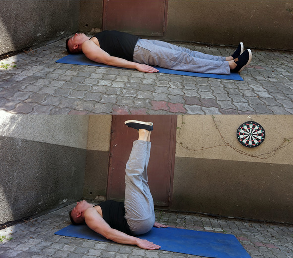 Лежа на спине поднимите ноги на 90 градусов, старайтесь держать их максимально прямыми. Вернитесь в исходное положение до легкого касания пятками пола.