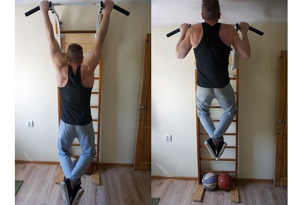 В идеале, конечно, иметь дома турник. Если он есть, то на другое уже не разменивайтесь. Даже если не можете ни разу подтянуться, то выполняйте подтягивания с опорой ноги на стул. Или вверх со стулом, вниз своим ходом. Еще раз говорю – посмотрите в интернете варианты подтягиваний. 100% вы найдете ту версию, которую можете выполнить в диапазоне 10—20 повторений.