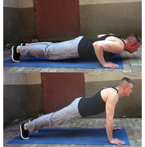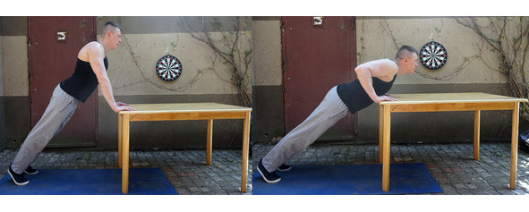 Идеальный вариант – это классические отжимания от пола. Если они слишком сложные для вас, делайте отжимания с колен. Не можете с колен, отжимайтесь от стула, от стола, от стены. Чем выше опора, тем легче.