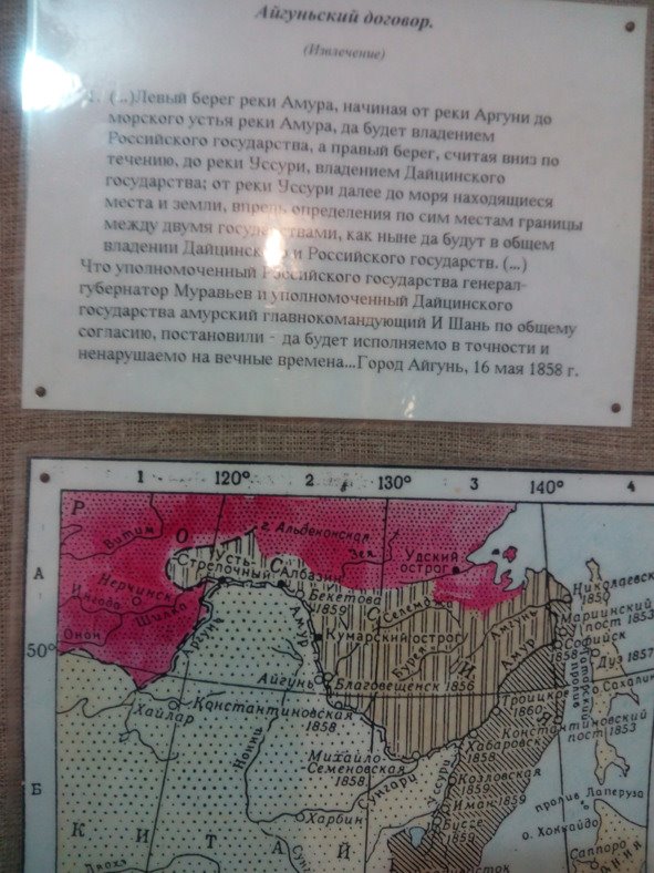 До 1840—50 годов русских в этом краю не было. Вся территория вокруг была диким краем принадлежащим китайцам. После Айгуньского договора территория от Амура и дальше отошла русским.