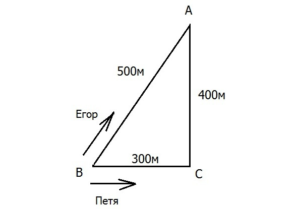 3. Два друга – Егор и Петя – устроили гонки на велосипедах вокруг квартала в дачном посёлке (см. рис.). Стартовав одновременно из точки В в разные стороны, Егор – вдоль улицы ВА, Петя – вдоль улиц ВС и СА, друзья встретились через 4 минуты в точке А и продолжили гонки с постоянными по модулю скоростями, объезжая квартал раз за разом в противоположных направлениях. Через какое минимальное время после этой встречи они снова окажутся вместе в точке А?