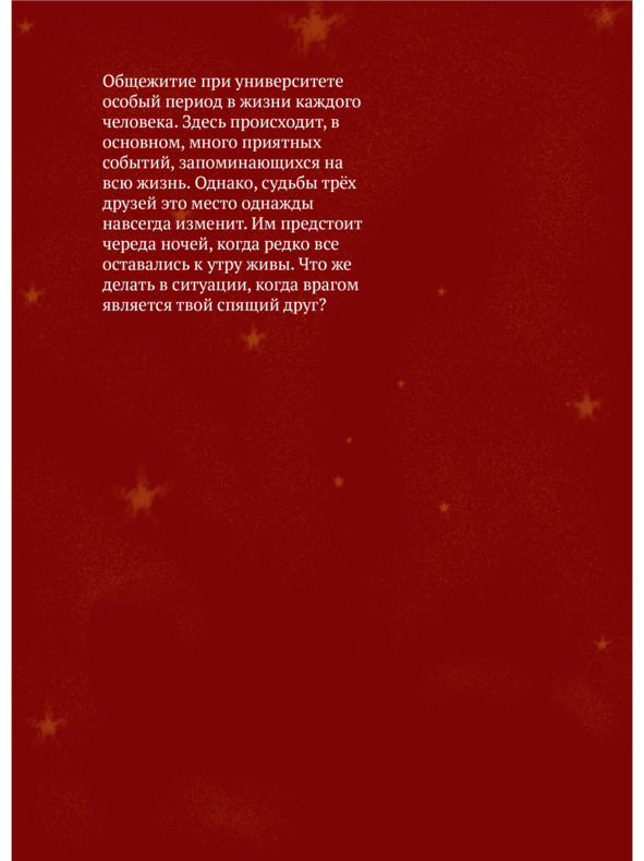 Переглянувшись друг с другом в последний раз, они оба выскочили на лестничную площадку и побежали каждый на свой этаж. Они решили, что на один, где жила Мэлани, пойдёт Дэвид. Ситуация была, мягко говоря, не из приятных. Приближаясь к её комнате в общежитии, он ни на секунду не переставал надеяться, что всё обойдётся. В их глазах чувствовался как страх, так и переживание за свою лучшую подругу. Когда они смотрели друг другу в глаза и спешно обсуждали план действий, они словно смотрели в зеркало, понимая, что их чувство страха от того, что может ожидать внизу, взаимно. Спустившись на один этаж, Вэйланд стал открывать дверь и ужаснулся увиденному. Какая-то тёплая красная жидкость оказалась на его руке. В ту же секунду он учуял запах, который связывал его воспоминания с неприятным ощущением – болью. Жидкость, будучи совсем свежей, начала стекать с его ладони на пол, и разум Вэйланда, отказывающегося верить в происходящие, всё-таки признал, что это была кровь. Его ярое желание помочь людям и поскорей добраться до них притупилось в ту же секунду. В этот момент Дэвид должен был застать ситуацию куда плачевней. Он добрался до её этажа и уже собирался ускориться, но, остолбенев, увидел аналогичную картину происходящего, как и у его лучшего друга. Лужи крови, следы от волочения на полу, окровавленные отпечатки рук на стене и непонятные остатки чего-то человеческого, разбросанные по всему коридору. Дэвид от такой жути уже давно унёс бы свои ноги, но такие чувства, как забота, любовь и верность другу, не давали ему повернуть назад. Он буквально переступал через все эти следы кровавого побоища и аккуратно приближался к концу коридора, где проживала Мэлани. Дэвид очень доверял Вэйланду и рассчитывал на то, что он сделает всё возможное, чтобы помочь пострадавшим студентам. Так был рассчитан их план. Он взамен потребовал позаботиться об их лучшей подруге. Была глубокая ночь. Часа три или четыре. На этажах как-то странно, с перебоями, работало освещение, и ребята шли иногда наугад. Вэйланд всегда был большим оптимистом, и даже в такой страшной ситуации он верил, что Дэвида он оставил не зря и всё образуется. Дойдя до комнаты Мэлани так быстро, как позволяло его хладнокровие, он ни на миг не успокоился. Услышав истерический плач соседок по комнате, которые успели забежать в ванную и туалет, он понял, что дело дрянь. Мэлани там он не обнаружил, а рассмотреть комнату ему не позволило дикое желание найти её как можно скорей. Может, это было и к лучшему, так как трупов с вывернутой шеей Дэвид ещё ни разу не видел. Тем временем Вэйланд старался помочь уже третьей жертве какой-то таинственной напасти и был уже почти на лестничной площадке, пройдя весь этаж. Скорую и полицию они вызвали почти сразу, но, услышав слово «общежитие», они как-то не особо ринулись выезжать. Как бы сейчас ни поступил Дэвид, всё уже было предрешено, когда они решили действовать по их плану. Мэлани, заканчивая с будущим трупом, размазав его голову о кафельную стену, ждала его этажом ниже, и она словно чувствовала, что он придёт к ней именно сейчас и именно на эту кухню. Что, в принципе, и произошло спустя секунд десять. На небе стояла ярчайшая луна, которая показывала нам полный контур своей окружности. Это была ночь, в которой она находилась в четвёртой фазе, или, иначе говоря, в самой жёсткой фазе для на