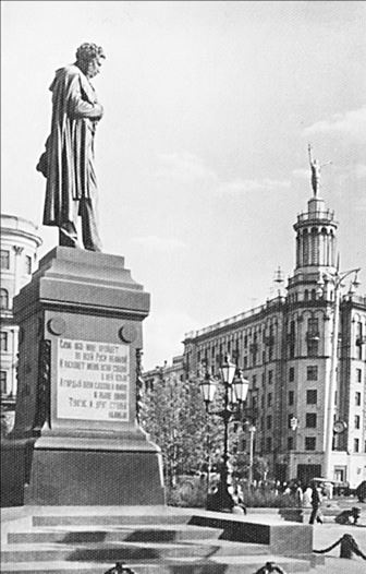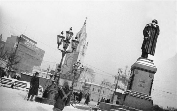 Спасти Пушкинскую площадь – это не только животрепещущее воззвание, но и своеобразная характеристика всего, что происходило с площадью на протяжении последнего столетия. Как фигуры с шахматной доски, исчезали с площади ее непременные приметы, зато нарождались другие – дом «Известий», кинотеатр «Россия», а в 1950 г. перевезли сюда памятник Пушкину.
