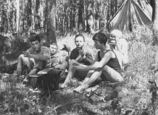 Чтобы враг запутался в наших следах, ребята с некоторых девочек, которые слабее, перенесли рюкзаки себе на грудь. Мужество и выдержка Семёнова принесла желанные плоды. Вода стала убывать, и через некоторое время стало сухо. Потом и лес изменился. Принял какой-то более цивилизованный вид. Наше стремление было вознаграждено. Мы вышли на берег желанного озера. Разбили лагерь и чудесно провели время.