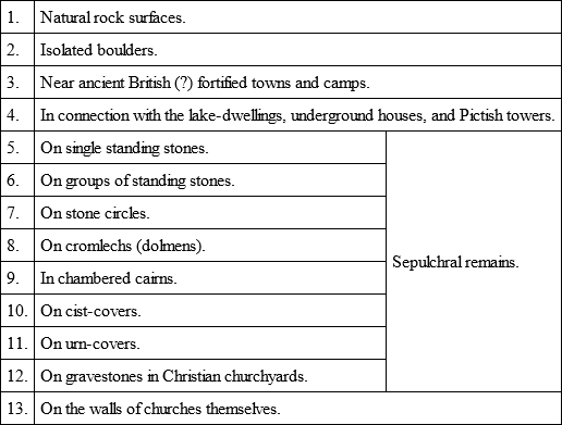 Mr. Romilly Allen, in a paper on some sculptured rocks near Ilkley in Yorkshire,50 that have these cup-hollows, says, “The classes of monuments on which they are found are as follows: —