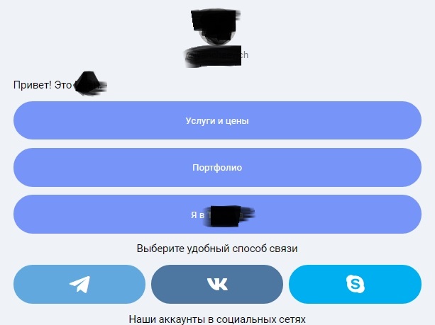 Такие сервисы делают простые лендинги, где можно указать несколько способов связи. Например, WhatsApp, Вайбер, Телеграм, сайт + свои социальные сети. Это удобно, но часто пользователи не реагируют на незнакомые и непонятные ссылки и просто не переходят по ним. Поэтому добавьте в описании призыв кликнуть по ссылке.