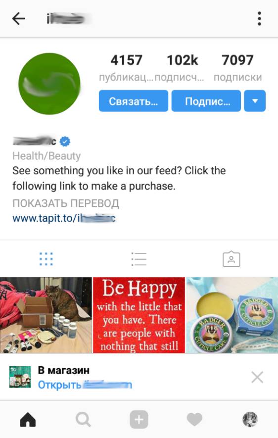 Магазин-витрина. Это такой тип аккаунта, в котором выставляют ассортимент товара с ценами и описанием. То есть, здесь прослеживается принцип обычного офлайн-магазина по алгоритму – посмотрел-спросил-купил. Монетизация СУГУБО с прямых продаж.