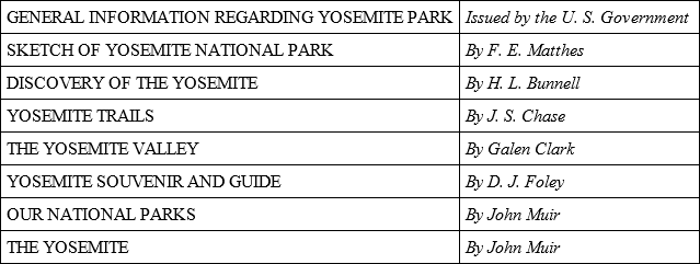 Yosemite National ParkWe are now in the very center of Yosemite Valley – though not of Yosemite National Park. Do not mistake the part for the whole. The Yosemite National Park – created a park October 1, 1890 – is a huge tract of land, 1,124 square miles in area. It contains many valleys, mountains, streams, lakes, and waterfalls. Its vast territory has been explored by countless travelers, and it is the favorite playground of the Sierra Club – a body of hardy and adventurous men and women trampers, campers, and mountain climbers.
