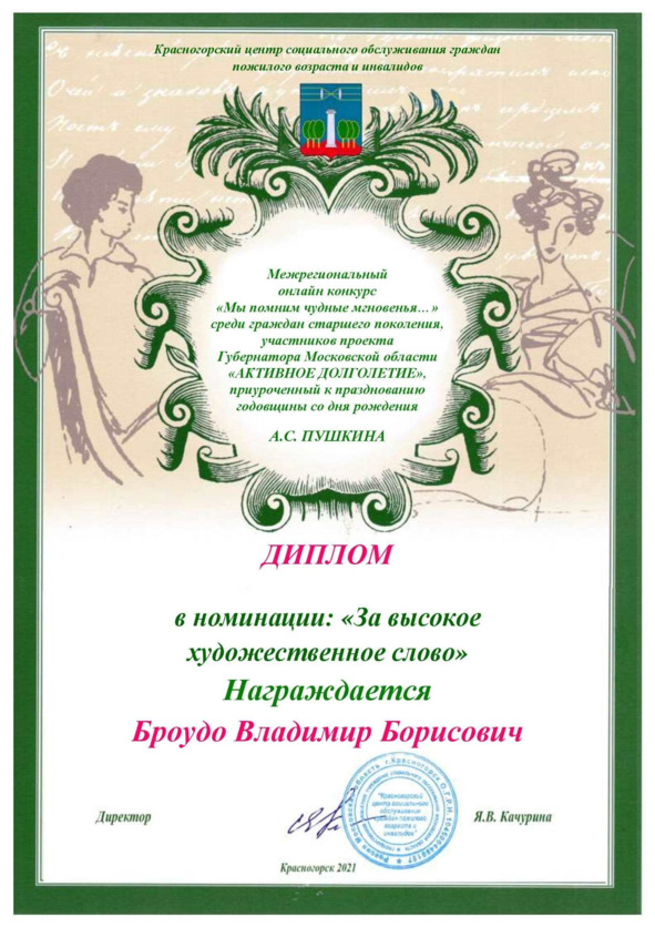 Лауреат участвовал в данном конкурсе от п. Некрасовский (ДК и Некрасовская библиотека) с фантастическим рассказом https://proza.ru/2013/03/17/1309