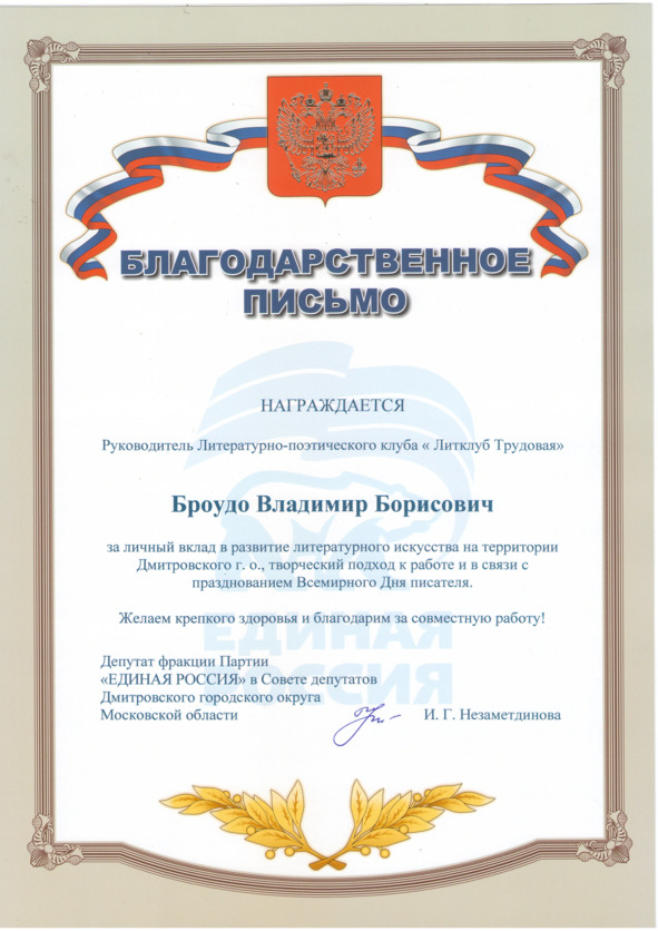 Руководитель Литклуба Трудовая В.ладимир БроудоВоспоминания о военном детстве