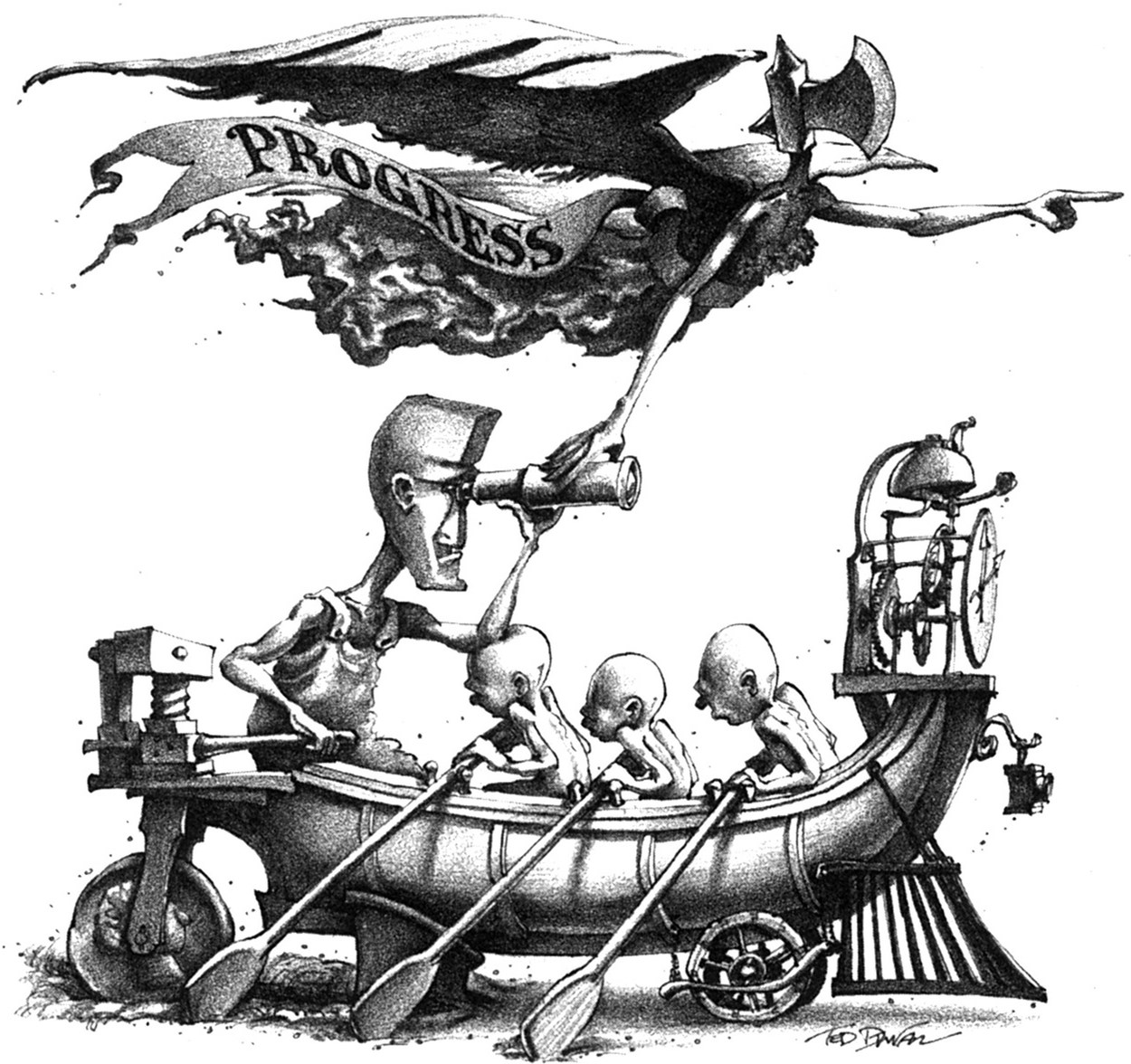 В результате мы, живущие в индустриально развитых странах, здоровее, богаче, лучше накормлены, лучше образованы и более мобильны, чем все остальные. Тот факт, что прогресс не обходится без разрушения и разорения, не должен нас удивлять, поскольку мы с самого начала шли вперед, уничтожая. Лишь изредка – если такое вообще случалось – мы оглядывались назад, чтобы оценить последствия нашего шествия по миру. Прогресс вечно увлекал нас вперед – к горизонтам, достичь которых мы и не мечтали. Благодаря топору прошлое умерло, а будущее мы создавали сами.