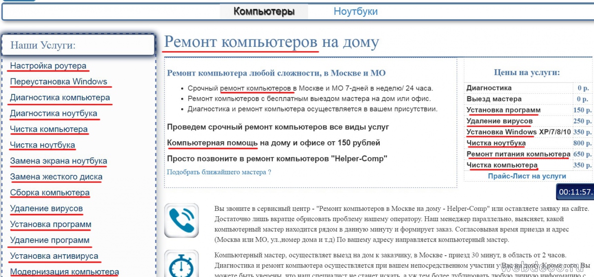 Важно: Старайтесь собирать на этом этапе максимально обобщенные запросы, т. к. детализацию будем делать на следующем этапе. Например: не нужно записывать запрос «Срочный ремонт компьютеров», пишите как можно короче, т. е. «ремонт компьютеров», но сокращайте, чтобы не потерялся смысл, т. е. не нужно писать «замена жесткого», т. к. теряется смысл фразы, пишите «замена жесткого диска».