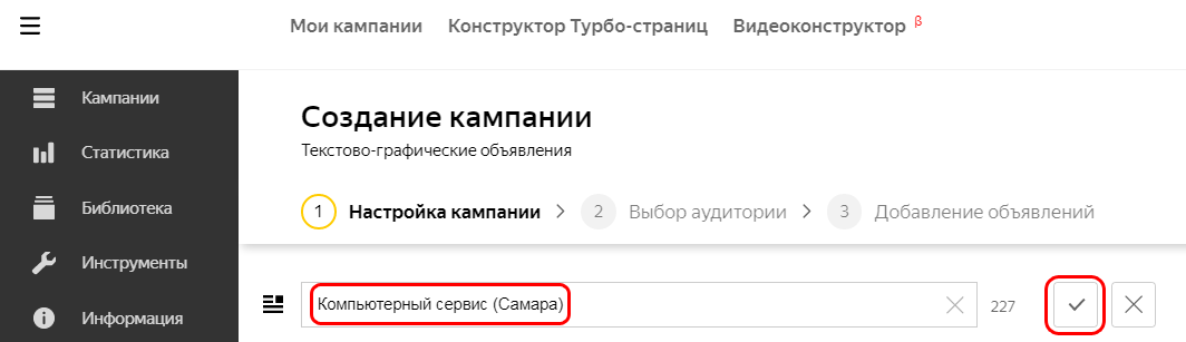 Выбираем тип кампании: «Текстово-графические объявления», этот выбор позволит получить самую высокую отдачу. Если вы планируете рекламировать мобильное приложение, то вместо «Текстово-графические объявления» выбирайте «Реклама мобильных приложений». В данной статье мы подробно расскажем, как настроить Яндекс директ самостоятельно, используя наиболее эффективный и популярный вид кампании: «Текстово-графические объявления».