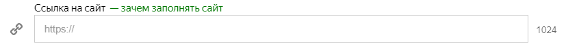 Ссылка на сайт позволяет автоматически найти организацию и счетчик Яндекс метрики. Функция полезная, но на момент написания данной инструкции сильно глючила, в частности, при указании сайта без https, поэтому лучше оставить поле пустым, а организацию и счетчик Яндекс метрики добавить потом вручную в полях, которые будут ниже.