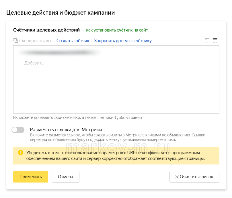 Настройка: Счётчики Яндекс.Метрики в Яндекс директ