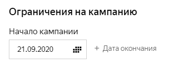Начало кампании – указывается автоматически, при необходимости вы также можете указать дату окончания, хотя это необязательно.