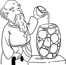 Тогда учитель всыпал бобы в сосуд и потряс его так, чтобы они заполнили пустоты, между булыжниками. Бобы заполонили все свободные щели, и учитель повторил свой вопрос: «Полон ли сосуд?».