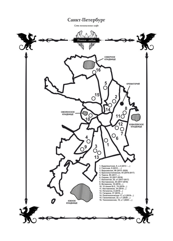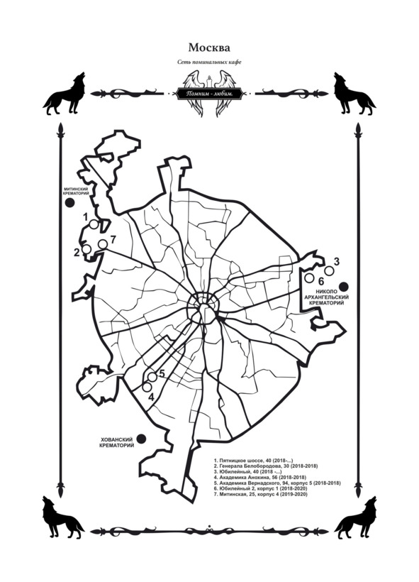Внизу они увидели большую и пустую комнату, в центре которой стоял накрытый стол с закусками и спиртным. На стене была выведена зеленой краской надпись «Помним-любим» и логотип их сети.