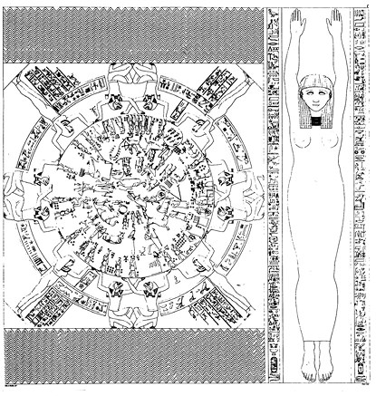 Несмотря на выдающийся культурный расцвет и длительный период пристального изучения неба, не говоря уже о почтительности, с которой египтяне относились к некоторым небесным объектам (календарь здесь является, скорее, исключением), это, по-видимому, не побудило их найти какое-либо более систематическое объяснение того, что они наблюдали на самом деле. Хотя египтяне и овладели письменностью, они, похоже, не вели систематических записей планетных движений, затмений и других событий, проявляющих себя нерегулярным образом. Им было проще абстрагировать звездные легенды, чем математику звезд. Декорированные памятники, из которых более восьмидесяти могут быть с тем или иным основанием причислены к категории астрономических, содержат изображения мифологических космических божеств, включая богов Солнца и Луны, а также планет, ветров, созвездий, земли, воздуха, неба, сторон горизонта и т. д. Они демонстрируют близкое знакомство с очертаниями созвездий (которые, конечно, не совпадали с нашими). Скорее всего, громадная астрономическая репутация, которой египтяне пользовались почти на всем протяжении последних двух тысячелетий, основывалась на недоразумении, возникшем в период, когда Египтом правила Римская империя.