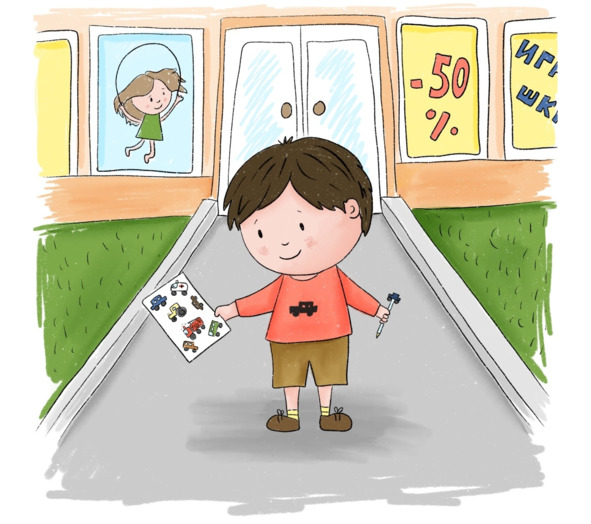 Я был с мамой в магазине,Мне раскраски там купили.И наклейки выбрал я,На них машинки у меня.Вдруг на кассе, как с картинки:Ручки, а на них машинки.Как же хочется их взять,Ими что-то написать.Купила мама ручку мне,Принес домой ее в руке.Скорее в комнату к себе,Писать, чтоб ручкой на листке.Красиво линию веду и представляю,Что пишу.