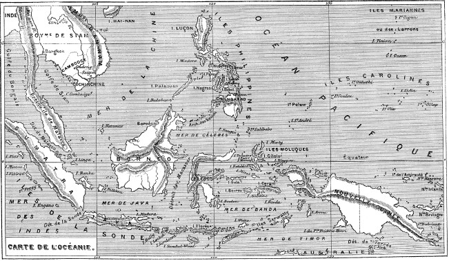 Карта Океании.Со старинной гравюры