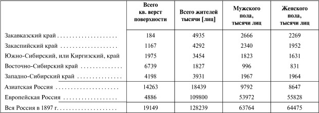 Начав обзор народонаселения крупнейших государств с запада, идя на восток, после Германии следует Россия. Но так как она, естественно, знакома моим русским читателям, и о ее народонаселении высказано недавно мною все важнейшее в книге «К познанию России» (1906), то я остановлюсь здесь лишь на основных цифрах, различив, однако, данные Европейской России от Азиатской, так как это необходимо для отдельных счетов Европы и Азии. На основании данных переписи 1897 г. (27 января), сведенных в вышеупомянутой моей книге, имеем для Азиатской России следующие численные данные: