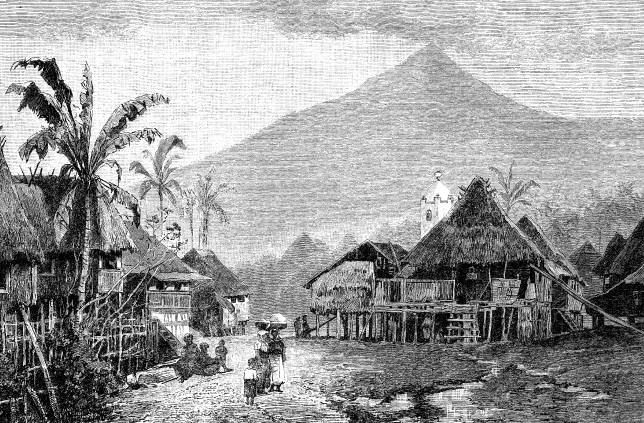 Деревня тагалов на острове Люсон (Филиппинские острова). Гравюра XIX в.