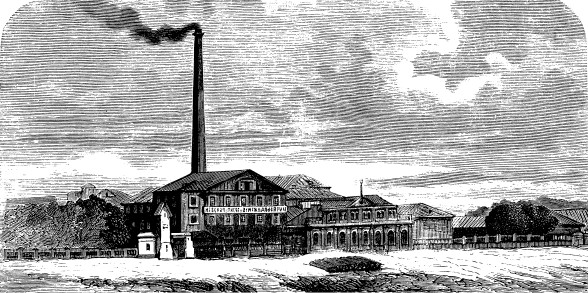 Здание писчебумажной фабрики Варгуниных. Гравюра XIX в.