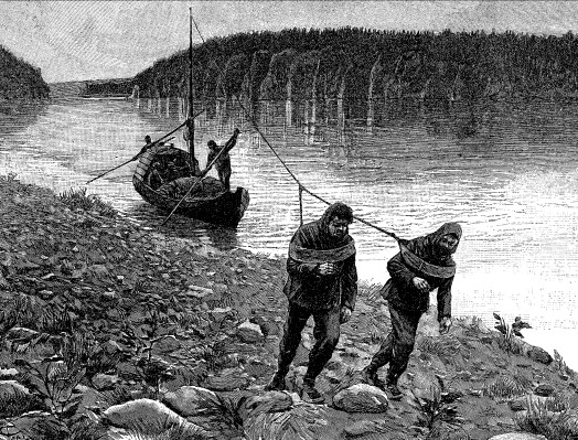 Бурлаки на реке Шугоре. Гравюра XIX в.