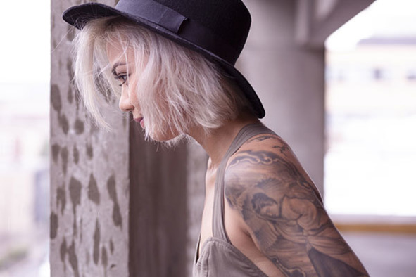 София часто старалась быть за работой когда жила с мужем вместе и не старалась делать рисунки на своём теле в отличии от этого случая после одиночества и развода в семейном смысле женщины.