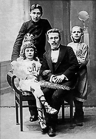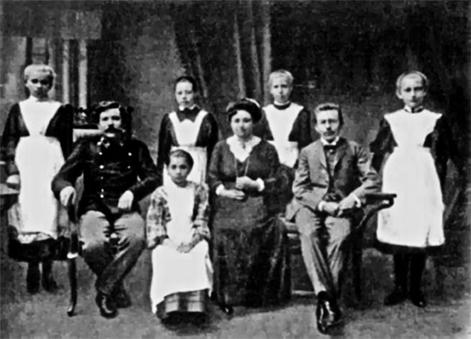 3. Слева направо: мать А. С. – Татьяна Михайловна Макаренко с дочерью Наташей на коленях, сестра Татьяны Михайловны – Пелагея Михайловна, Александра Семеновна (старшая сестра А. С.), отец А. С. – Семен Григорьевич Макаренко с сыном Антоном, муж Пелагеи Михайловны с сыном Василием. 1894 г.