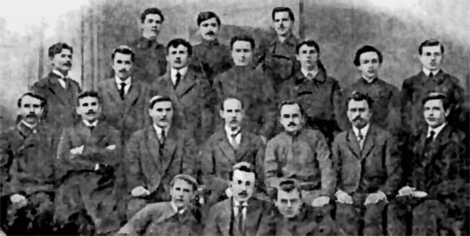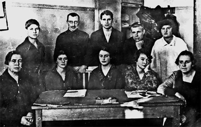 13. Студенты и преподаватели Полтавского учительского института. А. С. Макаренко – в центре в первом ряду.