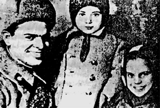57. С. А. Калабалин и его дети Антон и Галя. Декабрь 1943 г.