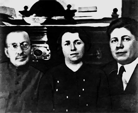 23. Слева направо: А. С. Макаренко, его мама Татьяна Михайловна, Е. Ф. Григорович и ее брат. 1926–1927 гг.