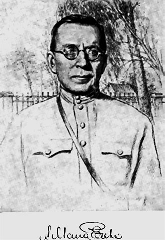 36. К. И. Сердюк – завхоз колонии (фото 1940-х гг.). В «Поэме» А. С. Макаренко пишет, что Калина Иванович напоминает врубельского Пана. В «Типах и прототипах» А. С. Макаренко дает такую характеристику персонажу: «Он по-старчески радостно переживает успех колонии, явно затевает борьбу против кулаков, принимает участие в театральной деятельности, особенное участие в свадьбе, но осилить Куряж не берется. 4. Развитие и конец роли. В главе 10 он грустно уходит в отставку, окончательно покоренный новой жизнью, не отказываясь, однако, от шутливых сентенций по поводу новых порядков. Посещает колонию в главе 9. Нужно показать особенно прелестный букет сентенций. Его коммуна провожает почетным караулом».