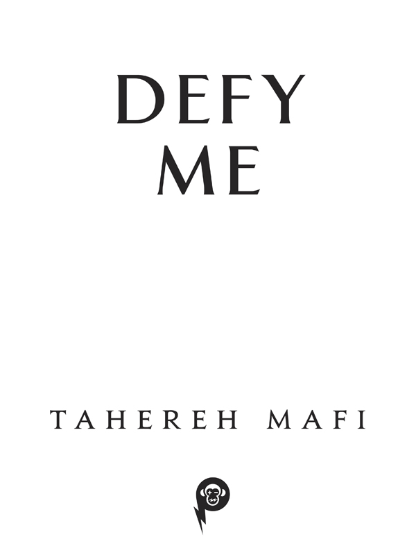 Not figuratively. She’s literally gone. Disappeared. One second she’s in my arms, and the next, I’m grasping at air. I blink and spin around, convinced I’m losing my mind, but when I scan the room I see the audience members begin to stir. Their shirts are torn and their faces are scratched, but no one appears to be dead. Instead, they begin to stand, confused, and as soon as they start shuffling around, someone shoves me, hard. I look up to see Ian swearing at me, telling me to get moving while we still have a chance, and I try to push back, try to tell him that we lost Juliette—that I haven’t seen Warner—and he doesn’t hear me, he just forces me forward, offstage, and when the murmur of the crowd grows into a roar, I know I have no choice.