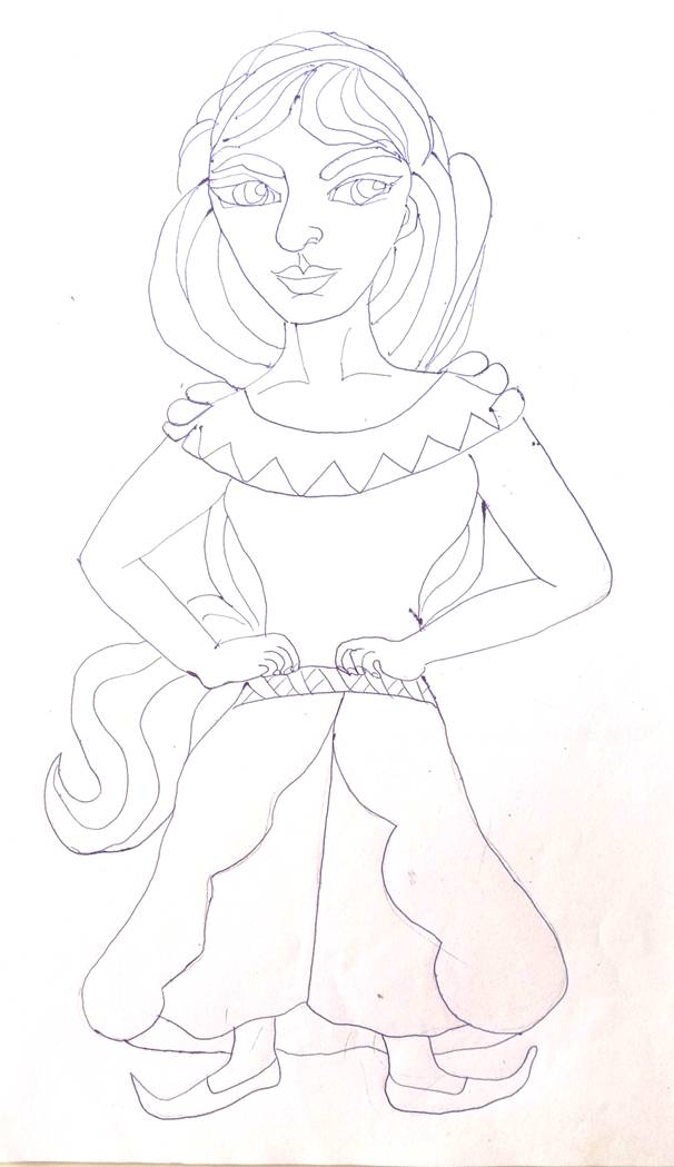 Когда подошла к супругам, то уже была ростом с них. Кожа у нее была светлая, а глаза зеленые, и она с грустью смотрела на спящих. Затем отошла, причесала свои каштановые волосы и они рассыпались до самых пяток. Она быстро завязала их в тугой узел, одела платок хозяйки и стала резать овощи. Как по щучьему веленью, овощи сами летели в котел. И она, махнув рукой, искрой зажгла костер. Овощи сварились и девушка порезала еще лук, помидоры и различные пахучие приправы. И вместо котла уже жарились в сковороде специи для овощей. Сбегала на склон за листочками чая и заварила их. Приготовив еду, сама поела и попила, затем, взмахом руки, сделала портрет целой семьи, себя и по краям двух спящих супругов. Рамка была из драгоценных камней и весь портрет сиял. Его она положила на стол рядом с изумрудом и голубой дымкой исчезла в камне.