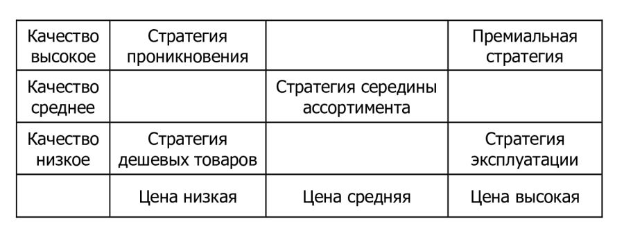 Таким образом, комбинируя уровни качества и цены своих товаров или услуг, можно выбрать наиболее эффективную стратегию, отвечающую запросам потребителей в конкретный момент времени на определенном рынке.