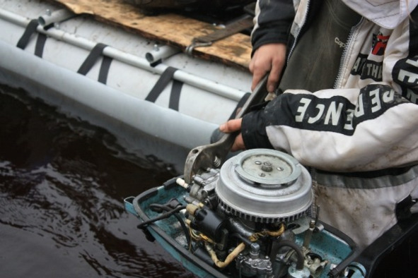 Пробуем разные комбинации – очень уж нам не нравится «Ветерок» на «резинке». Этот мотор не хочет работать на малых и средних оборотах – только на максимуме, но тогда бензин через него льётся, похоже, в реку напрямую.