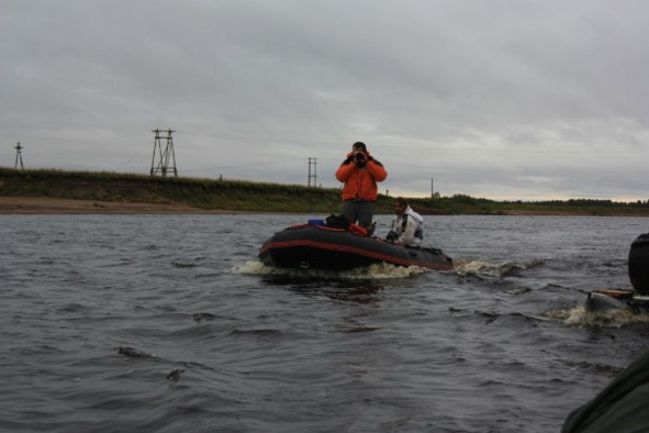 Пока я тут про космодром «заливал», уже давно водружён мотор на «ракету» (ах-да, самое-то главное. Если сшитая из дерева лодка – шитуха, то как же тогда назвать лодку, сделанную из «обтекателей и элементов силового конуса боковых ракетных блоков»? «Ракета», однозначно), доедены шаньги с морошкой и черникою, допит чай. Пора и честь знать, да и паром через вновь обретенную Пёзу до 11-ти только. Мотор, установленный на «ракету», тарахтит под присмотром хозяина дома. Впрочем, это уже те места, где моторы с лодок не снимают. Зачем, если и двери не запирают? А мы возвращаемся в Мезень.