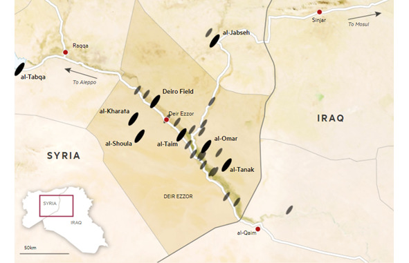 Карта нефте-и газовых месторождений в провинции Дейр эз-Зор