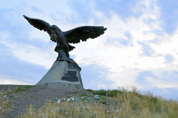 Донской орёл, донских степей!Спустился к Шолохову на юбилей…На курган высокий сел,Посмотрел на беспределИ как-то сильно заболел,Да! Быстро здесь окаменел.Превратился в памятник большой!Народ пошёл к нему гурьбой…Чтоб за крыло большое взяться,С донской степью пообщаться.Туристы едут и идут,Орла степного конечно чтут…Как говорится на Руси!Орла степного, обожают от души…Чтоб за них не забывали,Память все здесь оставляли…То бутылки здесь бросают,То бумагу все оставляют.Девки ночью здесь бывают!Кой-когда… нижнее бельёздесь забывают…Впрямь загадили орла!Такого степь родная не ждала.Веками красотой она цвела!Пока здесь не было орла…Хотя орёл не виноват!Всему виной людской наш брат.Где человек наш отдыхает…Мусором в округе засоряет,А если б урна, – стояла здесь!То мусор в урне бы исчез…Но урны нету там нигде,Вот и сорят у орла везде.Сельская администрация знает!Но мер как видно не принимает…Хотя зарплаты получает.Выгорел сосновый бор в Шолоховском районе