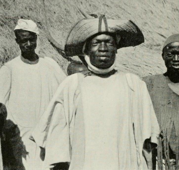 Эмир пожал мне руку, и мы прошли внутрь, проходя через большой, высокий зал с крышей из засохшей глины. Затем мы прошли через внутренний двор и переднюю камеру в комнату, где слуги эмира усадили его на подстилку из шкур. Затем он продолжил разговор, обращаясь ко мне, как «Большой белый человек из-за моря, пустившийся в долгий путь», и «Большой человек с двумя большими лодками и многоголосой трубой (граммофоном)». Мне понравился намек на граммофон, поэтому я спросил его, хочет ли он услышать трубу, на что он с жаром ответил «Да». Затем граммофон был принесен и приведен в действие с самым приятным эффектом, потому что обычно суровое лицо эмира расслабилось, и он был увлечен музыкальным ансамблем, и голосами, поющими песни в незнакомой ему гармонии. Он был очень впечатлен, когда в ответ на его вопрос я сказал, что не получаю деньги от короля, и совершаю путешествие за свой счет. Это, похоже, сильно подняло мой авторитет в его глазах. Он, видимо, очень хорошо был информирован о продвижениях отрядов экспедиции, и мне кажется, что он заранее имел беседу с моим проводником и запомнил детали наших путешествий, прежде чем дать мне аудиенцию. Я осмелюсь сказать, что информация также просочилась через его слуг от «боев», которые всегда ведут себя в новом городе, как глашатаи, хвастаясь и хорошо зная по опыту, что чем больше «поднимут репутацию» своего хозяина, тем большее значение будут иметь сами в глазах местных жителей.