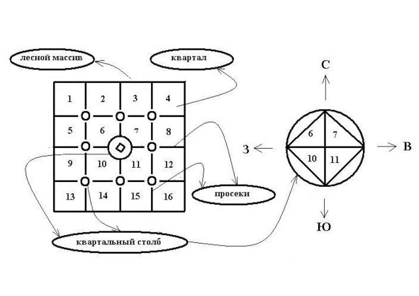 К слову, о квартальных столбах. Дело в том, что любой лесной массив делится просеками на «кварталы»: их нумерация идёт с запада на восток, спускаясь с севера к югу. В центре каждой четвёрки таких кварталов и ставится квартальный столбик, отражая на грани, обращённой к соответствующему кварталу, его номер. Вот, и все дела! – Направление на север будет, естественно же, указывать ребро столба между гранями с минимальными числами.